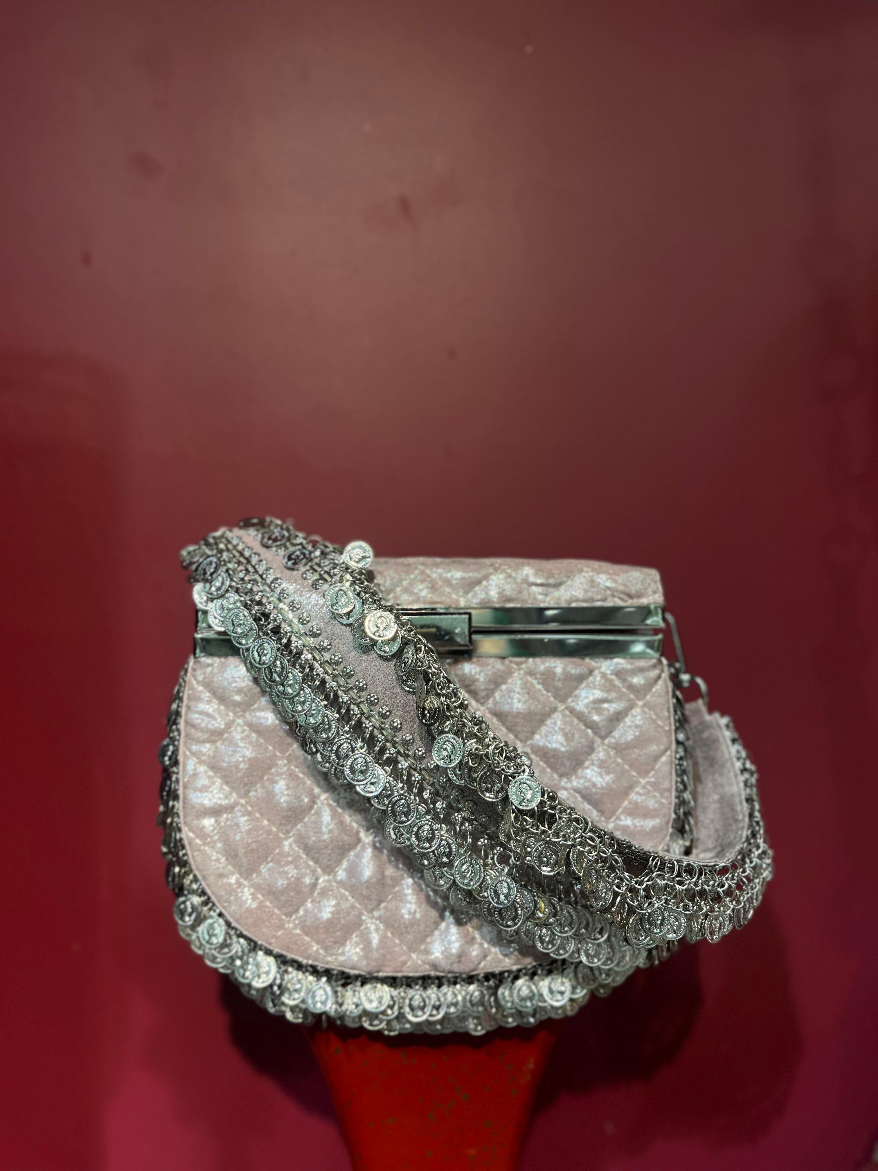 Elevate your ethnic ensemble with this exquisite handcrafted designer potli bag, meticulously created by skilled artisans. Each piece showcases intricate embroidery, traditional embellishments, and premium fabric work that reflects timeless craftsmanship. The compact yet spacious design makes it ideal for festive occasions, weddings, and cultural celebrations. Perfect for carrying essentials while adding a sophisticated touch to your traditional or fusion attire. A versatile accessory that seamlessly complements sarees, lehengas, and ethnic wear with understated elegance.