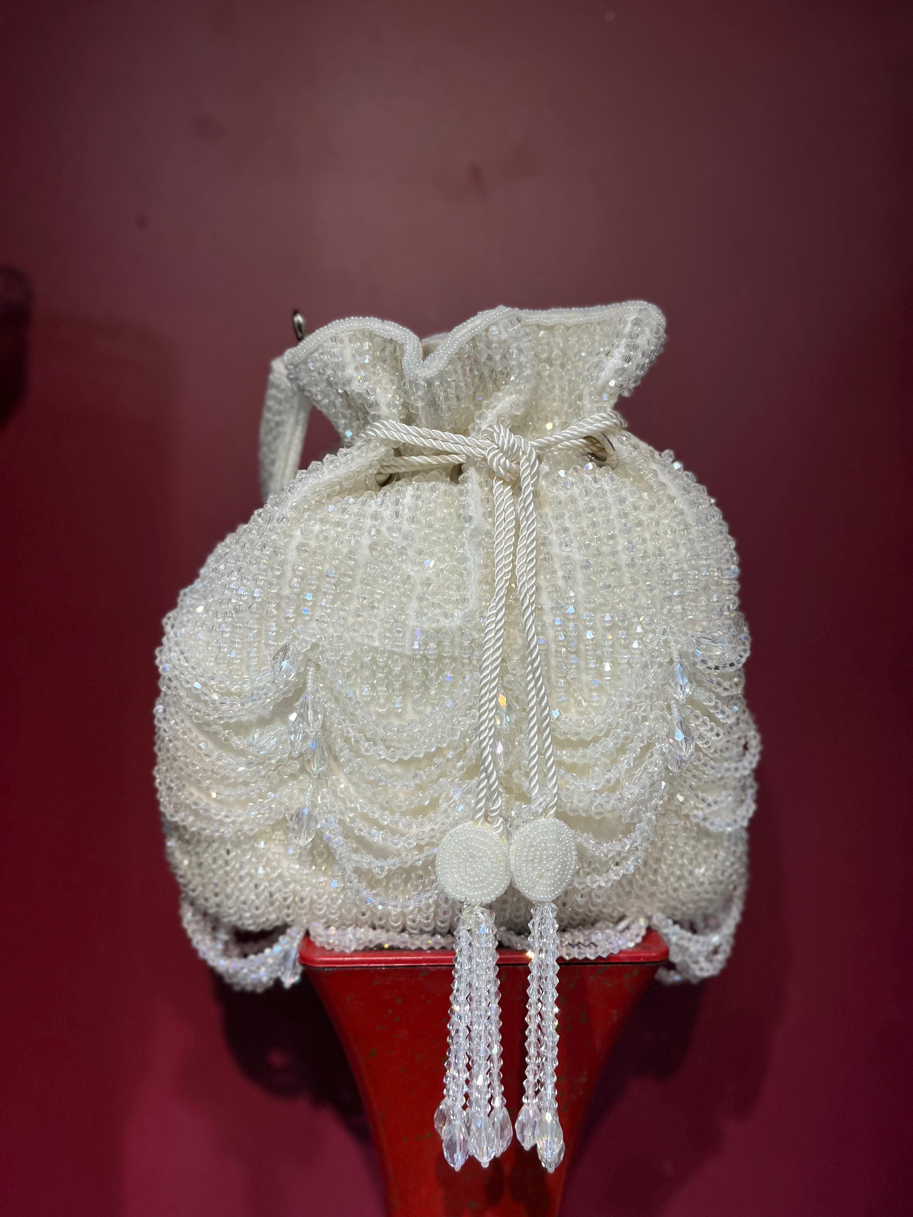 Elevate your ethnic ensemble with this exquisite handcrafted designer potli bag, meticulously created by skilled artisans. Each piece showcases intricate embroidery, traditional embellishments, and premium fabric work that reflects timeless craftsmanship. The compact yet spacious design makes it ideal for festive occasions, weddings, and cultural celebrations. Perfect for carrying essentials while adding a sophisticated touch to your traditional or fusion attire. A versatile accessory that seamlessly complements sarees, lehengas, and ethnic wear with understated elegance.